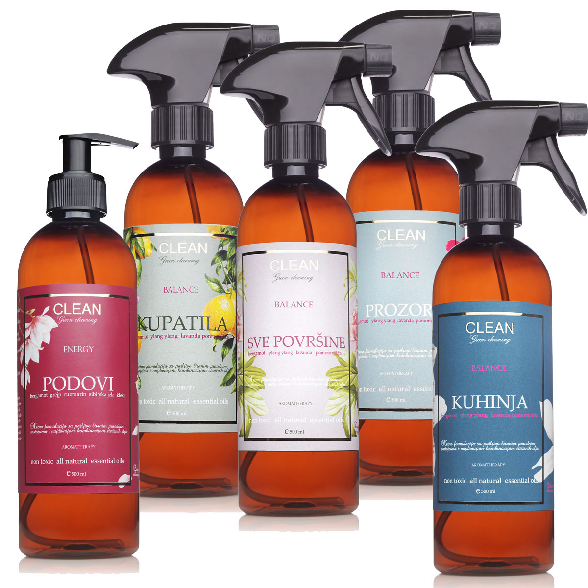 KUHINJA Jako smo ponosni na ovaj proizvod kao i na celu liniju za negu kupatila i kuhinje. Mnogo vremena posvećujemo higijeni kuhinje i zbog toga svi sastojci su pažljivo birani. Iskoristili smo svu jačinu prirode da napravimo proizvod koji ćete sa lakoćom koristiti za maksimalne rezultate. Naše mešavine eteričnih ulja izmestiće vas na drugo mesto I neće vam dozvoliti da osetite umor, neraspoloženje, brigu, umanjiće strah I tugu. KUPATILO Kao i za kuhinju izuzetno smo ponosni I na kupatilo I celu liniju priozvoda za njihovu negu.Dugo se radilo na odnosu prirodnih sastojaka koji čine da blista sve što dolazi iz kupatila. I vi I prostor u kome provodite dosta vremena. Kupatila su važna jer tu počinjemo I završavamo dan. Neka vas umiri BALANCE i ispuni ENERGY a vi sami izaberite u koju magiju ćete uskočiti od naših parfema… možda ljubav? SVE POVRŠINE Svaki dan je novi početek I donosi nam mnoštvo lepih ali I manje lepih emocija, dogadjaja. Mi tu energiju moramo otpustiti I nastaviti dalje. Kreirali smo zato proizvod za svaki dan, sve namene I površine…On svakodnevno utiče na vašu lepotu I lepotu vašeg prostora. PODOVI Ovo je viskokoncentrovani proizvod za sve vrste podova , može se korisriti od mermera do parketa. Dovoljna je mala količina za svakodnevnu upotrebu.Topla voda će rastopiti magične kapljice eteričnih ulja i ispuniti prostor isceljujućim mirisima …prepustite se. PROZOR Prozor je mnogo vise od staklene površine u prostoru. Prozor je naše sunce, naša energija, toplota, vazduh I dah. Zato nam je potreban čist, prozračan bez bilo kakvih tragova koji bi umanjili tu tu prozračnost I da sve ta bistrina traje duže. Da li je to moguće? O , da mogu’e je sa našim PROZORom je itekako moguće. Sa njim je sunce stalno tu. A sa suncem balans i energija.