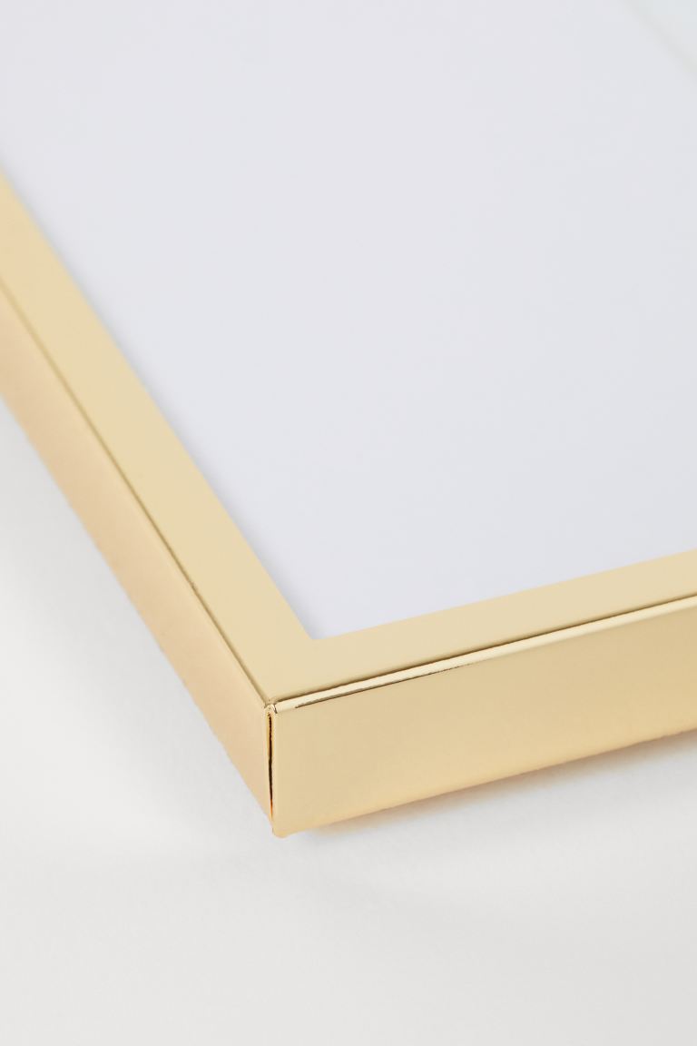 Frame in polished metal with a glass front and velour back. Stand and metal fittings at the back so you can stand or hang the frame vertically or horizontally. Screws not included. Mount that fits pictures 10x15 cm. Size of frame 19.6x23.6 cm. Composition Back: Medium Density Fibreboard 100%Other: Glass 100%Frame: Metal 100%
