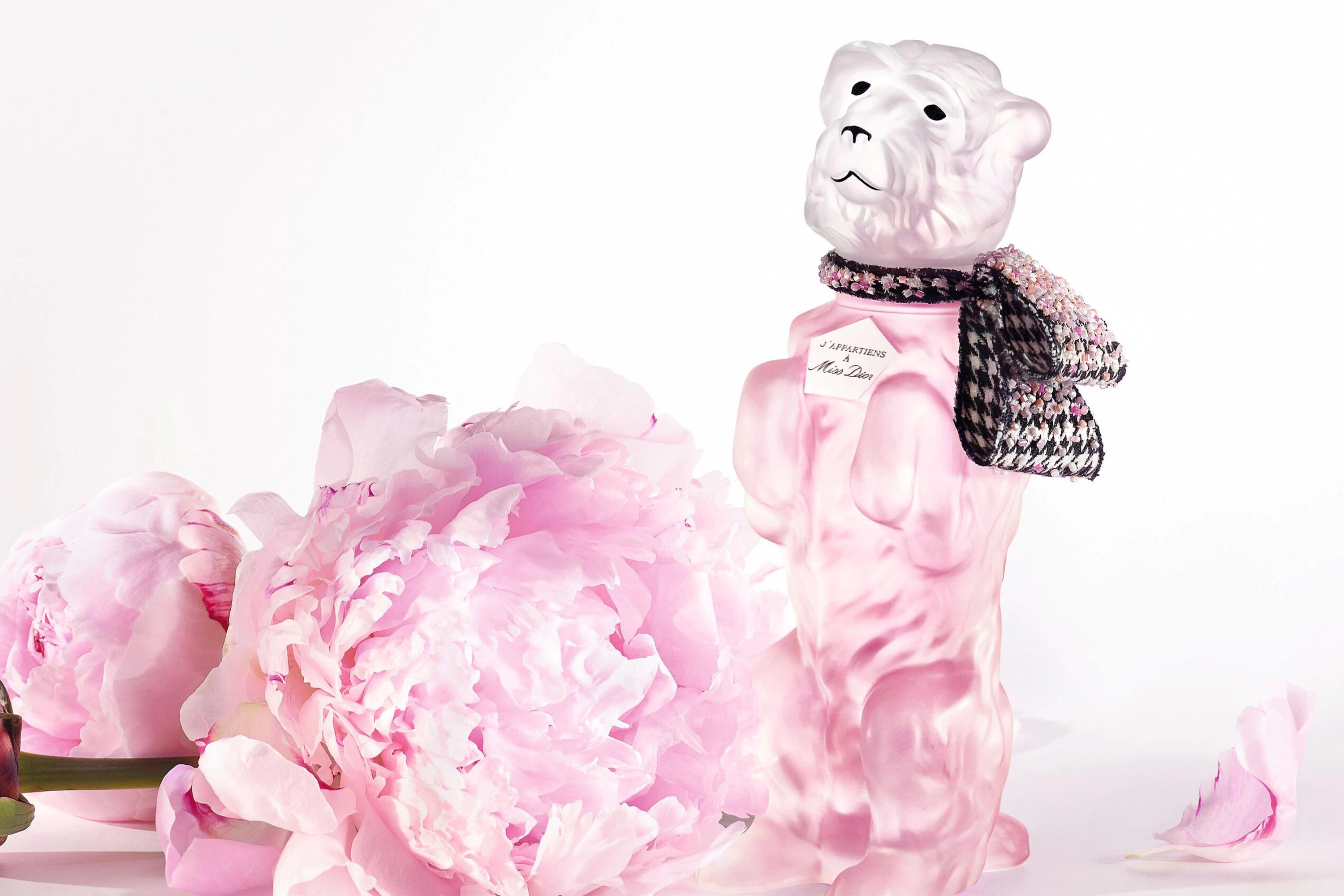 With playful affection, Christian Dior liked to name one design from each Haute Couture collection after his loyal companion, his dog Bobby. In 1952, he created a Miss Dior bottle in the image of his stylish dog. Collectors from around the world snapped up this limited edition called "J'appartiens à Miss Dior" ("I belong to Miss Dior"). Today, the House of Dior is reissuing this prestigious bottle and adorning it with a couture houndstooth bow, hand-embroidered with a multitude of bright, colorful beads. Your one-of-a-kind, numbered Bobby bottle contains the delicate floral fragrance of Miss Dior Blooming Bouquet.