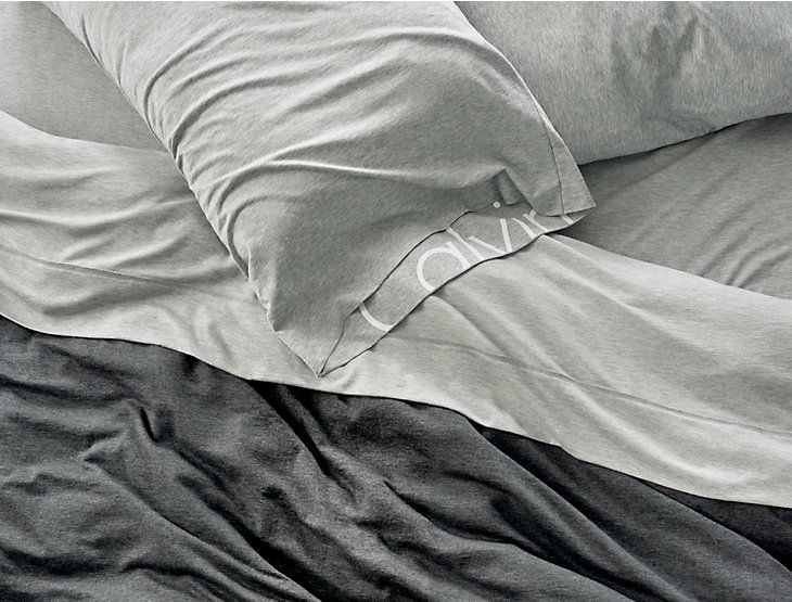 a relaxed and versatile duvet cover produced from an ultra-comfortable cotton-modal jersey knit in a range of heathered solids inspired by our best-selling underwear for him and her 51% cotton 49% modal jersey knit, 170 grams per square meter self-reversing duvet cover with hidden button closure twin measures 68" x 86" queen measures 88" x 96" king measures 106" x 96" machine wash cold made in china offered in a range of nine fashion inspired heathered shades including white, cream, grey, spray, ocean, indigo, fawn, charcoal and muted black part of our calvin klein modern cotton bedding collection