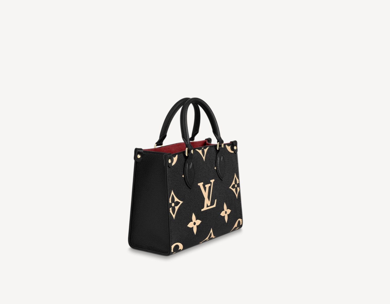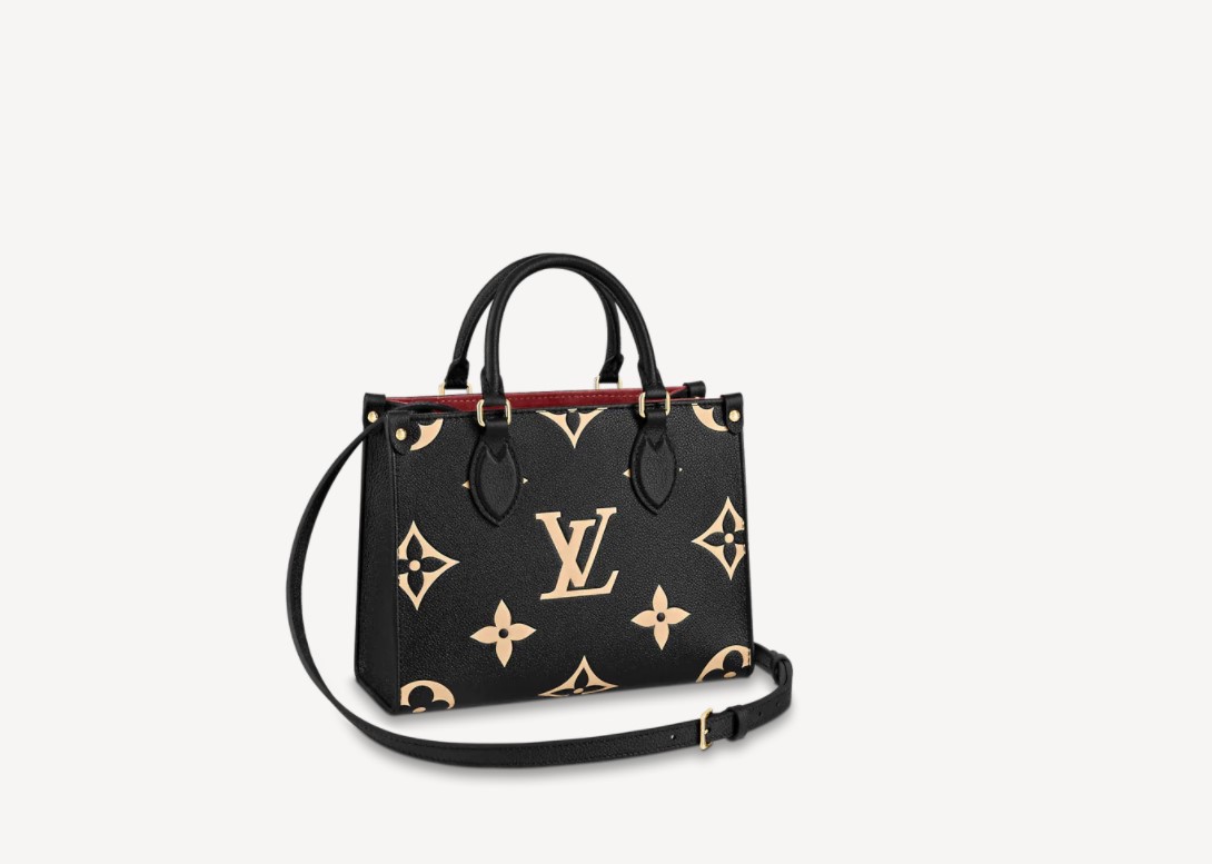 Inspired by Louis Vuitton’s famous Sac Plat from 1968, the Onthego PM tote is fashioned in Monogram Empreinte leather, embossed with a Giant Bicolor Monogram pattern. This smaller version of the original Onthego fits essentials such as an iPad Mini. Articulated top handles and an adjustable removable strap offer a variety of carry options. Detailed Features 9.8 x 7.5 x 4.5 inches (length x Height x Width) Black/Beige Embossed grained cowhide leather Grained cowhide leather trim Microfiber lining Gold-color hardware Inside flat zipped pocket Inside double pocket 4 riveted corner tabs Strap:Removable, adjustable Strap drop: 18.9 inches Strap drop max: 20.5 inches Handle:Double This reference is either Made in France, Spain, Italy or in the US.