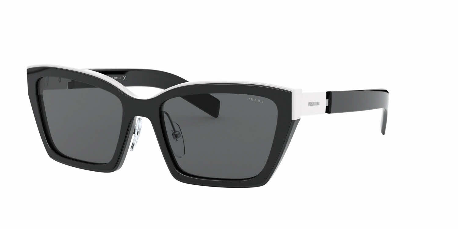 Alternative fit. Oversized sunglasses with modern elegance. The frame is characterized by its square silhouette with thick rims. The temples are embellished with shiny micro-crystals that create a look with luxurious, sophisticated allure. Prada lettering logo.
