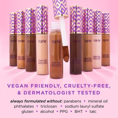 WHAT IT DOES full coverage formula for 16 hrs of flawless wear smooths & brightens to make eyes appear lifted crease-proof formula won’t cake or settle tape technology™ helps smooth & blur appearance of fine lines & wrinkles applies easily with jumbo speed smoother Need TSA-approved? shop travel-size TARTELETTE™ TESTED** 100% agree it doesn’t crease or look cakey 100% agree skin looks & feels smoother 100% agree undereyes look smoother 100% agree it covers dark circles 100% would recommend to a friend 97% agree it blurs & smooths appearance of wrinkles & fine lines CLINICAL RESULTS** vegan dermatologist tested 16-hour wear 12-hour crease-proof waterproof non-comedogenic **Based on a study of 32 subjects SKINVIGORATING™ INGREDIENTS shea butter: helps retain skin's elasticity mango butter: helps moisturize & condition licorice root: brightens appearance of dark circles & color corrects