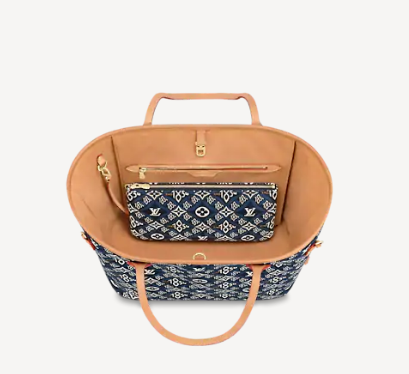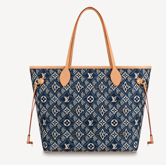 For Winter 2020, the House's classic Neverfull MM tote bag is made from Nicolas Ghesquière's new signature textile: a modern pattern featuring many of the House's symbols. Inspired by wallpapers from the 1960s, Monogram Flowers and LV Initials are combined with 1854s, the year Louis Vuitton started his company, to create a pattern with a neo-vintage feel.