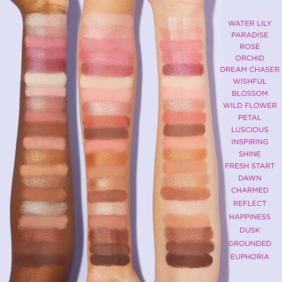 WHAT IT DOES romantic neutral, pink & plum shades mix of 10 matte, 4 pearlescent & 6 metallic finishes arranged in rows to create effortless, natural looks colored clays deliver maximum pigment & wear mineral pigments soften skin for smooth application shadow won’t crease or fade even on oily lids CLINICAL RESULTS* dermatologist tested all-day wear *based on a clinical study of 31 participants SKINVIGORATING™ INGREDIENTS Amazonian clay: delivers better, longer, truer wear